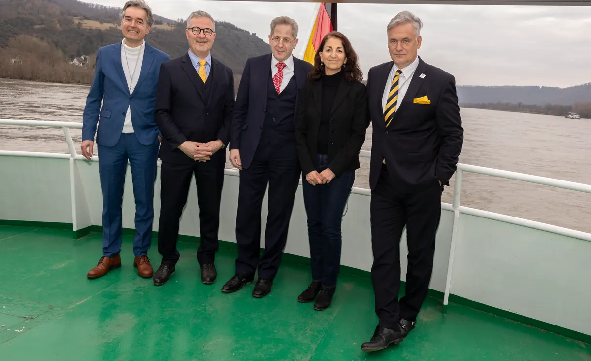 Während die Bundesstadt Bonn, das Siebengebirge und die wunderschönen Landschaften des Rheintals in den Panoramafenstern des Schiffes erschienen, betonte Dr. Maaßen in seiner Ansprache, dass für die von der WerteUnion angestrebte Politikwende nicht mehr viel Zeit bleibt. Die verantwortungslose Politik der Regierungsparteien, so Dr. Maaßen, bedroht die politische, soziale und wirtschaftliche Stabilität Deutschlands und unsere freiheitliche Demokratie durch Massenmigration, Deindustrialisierung, Klimahysterie, Bevormundung der Bevölkerung (Heizen, Auto, Gendern usw.) sowie durch die Instrumentalisierung von Verfassungsschutz, Inlandsgeheimdienst und Gesetzgebung („Demokratieförderungsgesetz“) gegen politische Konkurrenten. Begleitet von lautem Beifall und stehenden Ovationen der Anwesenden betonte Dr. Maaßen: „Wir setzen nicht auf Platz, sondern auf Sieg! Wir wollen regieren!“